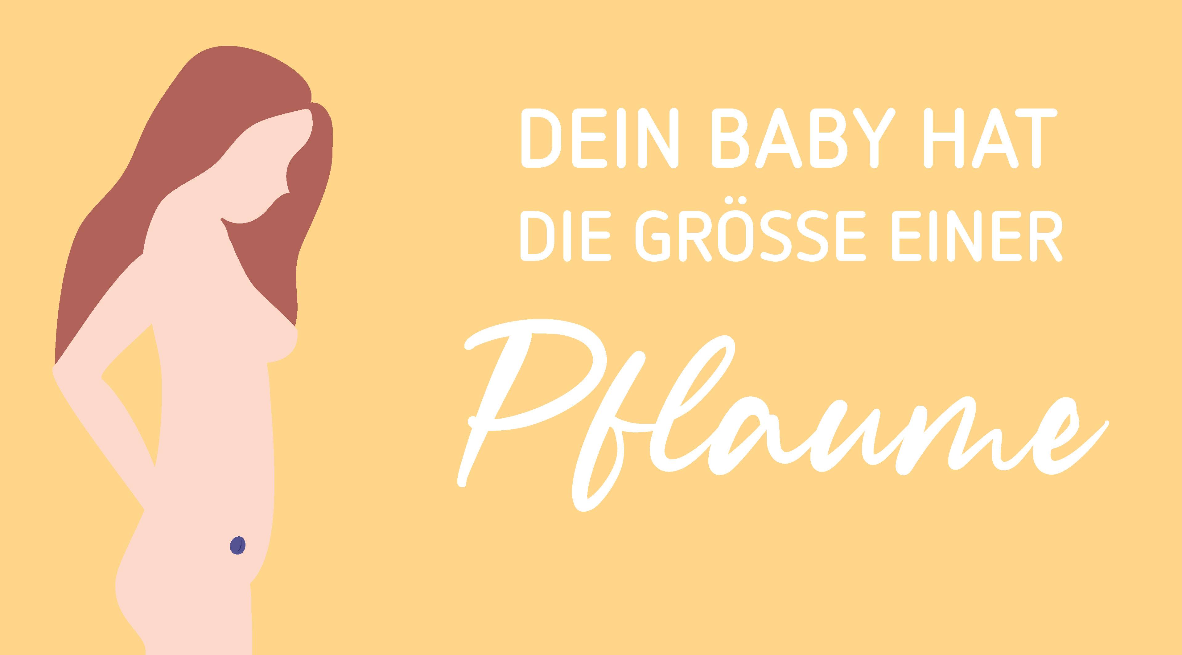 Das Baby ist jetzt 6 cm groß und wiegt circa 23-25 g – das ist vergleichbar mit einer Pflaume. In dieser Woche verhärten die Knöchelchen im Gehörgang und das Kleine beginnt Geräusche wahrzunehmen. Der Mund kann jetzt geöffnet und geschlossen werden. Gelegentlich testet das Baby auch seine Atmung, indem es Fruchtwasser „einatmet“ bzw. schluckt. Die tatsächliche Sauerstoffversorgung findet allerdings über die Plazenta statt. Zusätzlich bilden sich jetzt die Stimmbänder und der Kehlkopf aus. Purzelbäume und andere Bewegungsübungen stehen an der Tagesordnung, können aber von der Mutter noch nicht wahrgenommen werden.