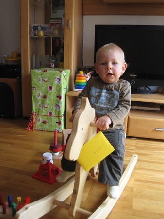 An seinem Geburstag bzw am Tag danach (Feier) Das Schaukelpferd hat Simons Opa selbst gemacht!