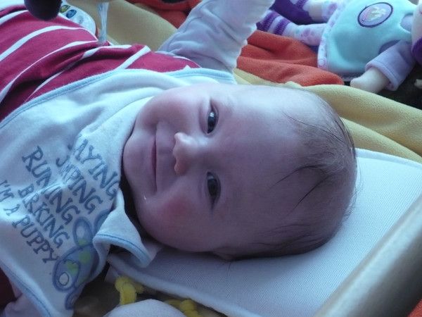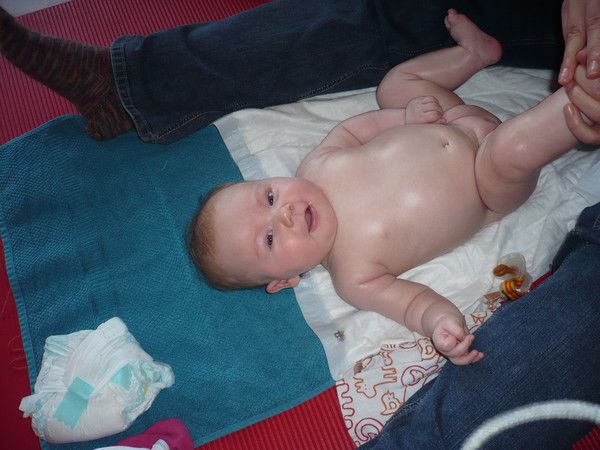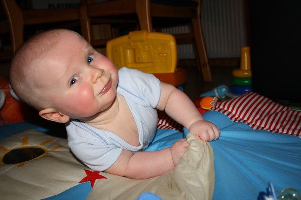 Thore bei seinen Übungen sich auf den Bauch zu drehen und zu halten......