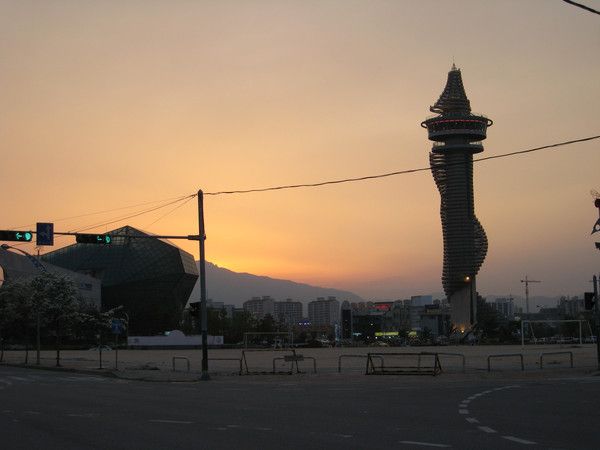Der Expo-Tower in Sokcho (Südkorea) bei Sonnenuntergang, gleich bei uns um die Ecke