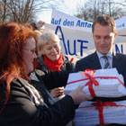 Übergabe der Unterschriften durch die neue Präsidentin des Hebammenverbandes Martina Klenk an Daniel Bahr, Parlamentarischer Staatssekretär im Gesundheitsminsiterium.