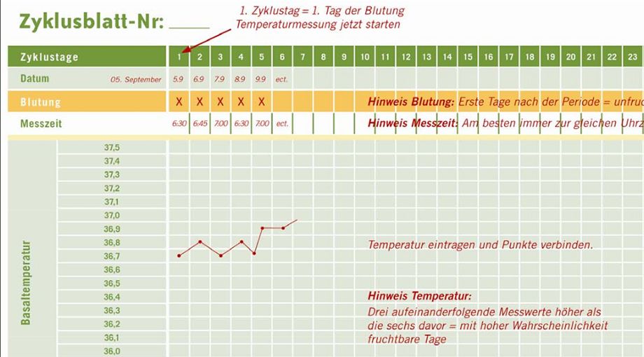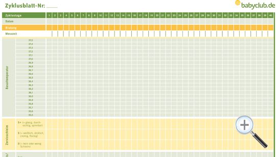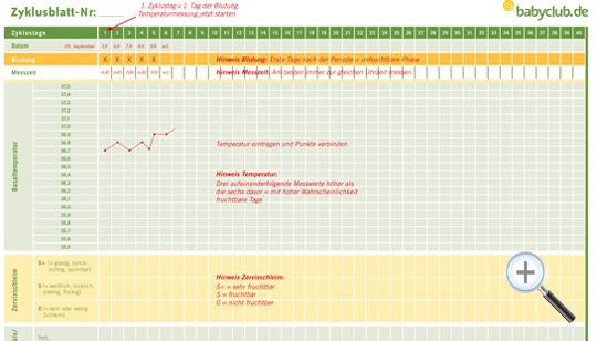 Um euch den Start zu erleichtern, haben wir ein Beispiel-Zyklusblatt erstellt, auf dem wir erklären, wie die Eintragungen gemacht werden. Druckt euch dazu außerdem das babyclub.de Zyklusblatt aus und beginnt mit eurer persönlichen NFP. Und wer nicht genau weiß, wie die verschiedenen Methoden angewendet werden oder sein Wissen dazu auffrischen möchte, klickt sich noch mal in die Info-Seiten zur Temperaturmethode, Zervixschleim-Beobachtung und das Abtasten von Gebärmutterhals/Muttermund.