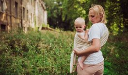- Wo ist das Baby? – Seitlich auf der Hüftte.