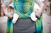 In einer Trageberatung kann man sich verschiedene Bindeweisen für Tücher und auch verschiedene Tragehilfen zeigen lassen und übt die richtige Handhabung damit.