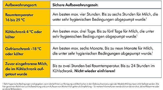 - frisch abgepumpte Milch muss immer sofort in den Kühlschrank gestellt werden