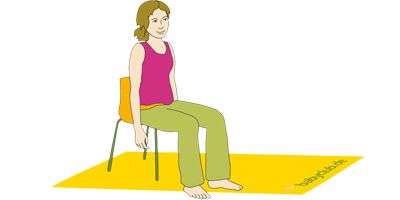 Damit ihr euren Beckenboden vollständig erspüren könnt, ist es wichtig alle drei Ebenen des Beckenbodens kennenzulernen. Setzt euch dazu aufrecht auf das vordere Stuhldrittel und positioniert die Beine hüftbreit.