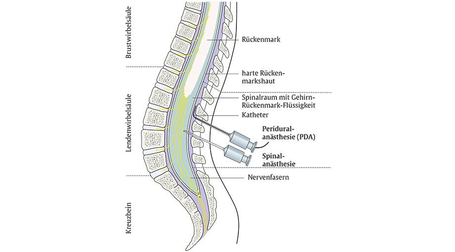 Muss von der natürlichen Geburt schnell zu einem Kaiserschnitt gewechselt werden, kommt schließlich die Spinalanästhesie zum Einsatz.