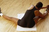 Lege dich jetzt auf den Rücken. Um die Muskeln am Bauch zu unterstützen, die Hände unter das Becken schieben. Zehenspitzen nach vorne strecken und die Beine senkrecht nach oben. So wird dein Beckenboden fixiert. Zeichne dann mit geschlossenen Beinen Kreise in die Luft. Je größer die Kreise, desto mehr wird die untere Bauchmuskulatur beansprucht. Atme dabei ruhig und gleichmäßig weiter.