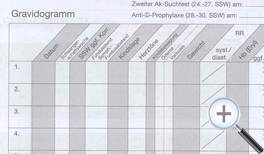 - RR syst. diast.: In diesem Abschnitt werden Ihre Blutdruckwerte vermerkt. Dies ist wichtig, da es bei zu niedrigem Blutdruck zu einer Mangelversorgung des Kindes kommen kann. Zu hoher Blutdruck muss ebenfalls beobachtet werden.