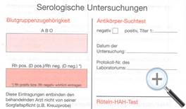 Nachdem der Frauenarzt die Blutgruppe und den Rhesusfaktor bestimmt hat, trägt er die Werte ein.